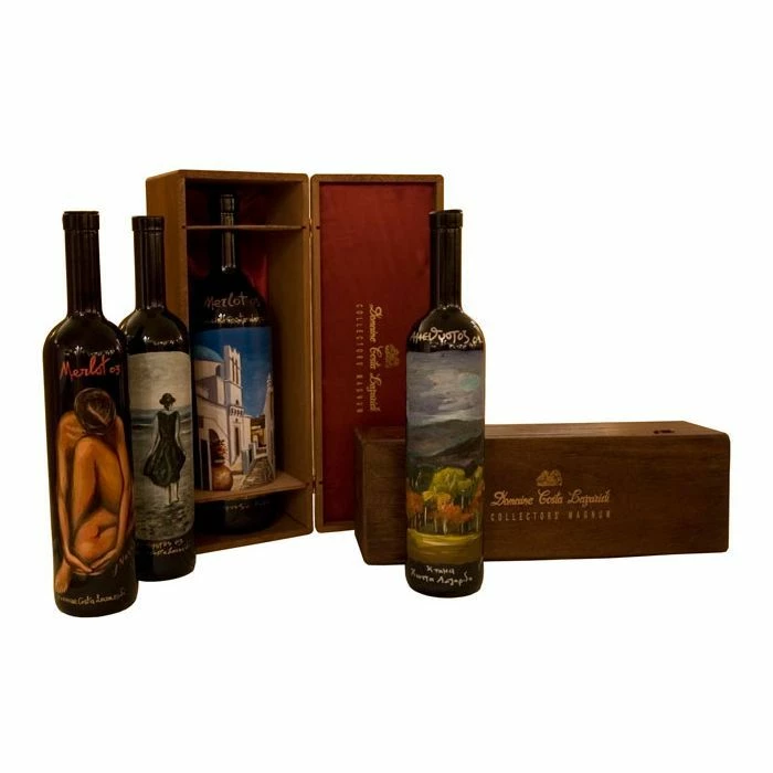 Η κάθε φιάλη MAGNUM COLLECTORS είναι μοναδική και ζωγραφισμένη στο χέρι. Τέσσερις Δραμινοί ζωγράφοι, ο Γιάννης Νάνος, ο Πάνος Βαφειάδης, ο Κωνσταντίνος Κερεστεντζής και η Ντιάνα Παδαδοπούλου καταθέτουν το ταλέντο τους και την αγάπη τους για το κρασί δημιουργώντας ένα μοναδικό ανεπανάληπτο έργο τέχνης σε κάθε φιάλη, μετατρέποντάς την σε αντικείμενο αισθητικής απόλαυσης. Συλλεκτικά κομμάτια που αξίζουν σε μια ιδιαίτερη στιγμή της ζωής σας.