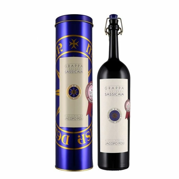 Η παλαιωμένη Grappa Sassicaia προέρχεται από ποικιλία σταφυλιών Cabernet Sauvignon και Cabernet Franc που προσφέρει ευχάριστες νότες από ξύλο και βανίλια, εξαιρετικά μαλακό, μεγαλοπρεπή, σύνθετο και δομημένο, ηλικίας 4 ετών σε βαρέλι, στη συνέχεια για 6 μήνες στα δρύινα βαρέλια της Sassicaia.
