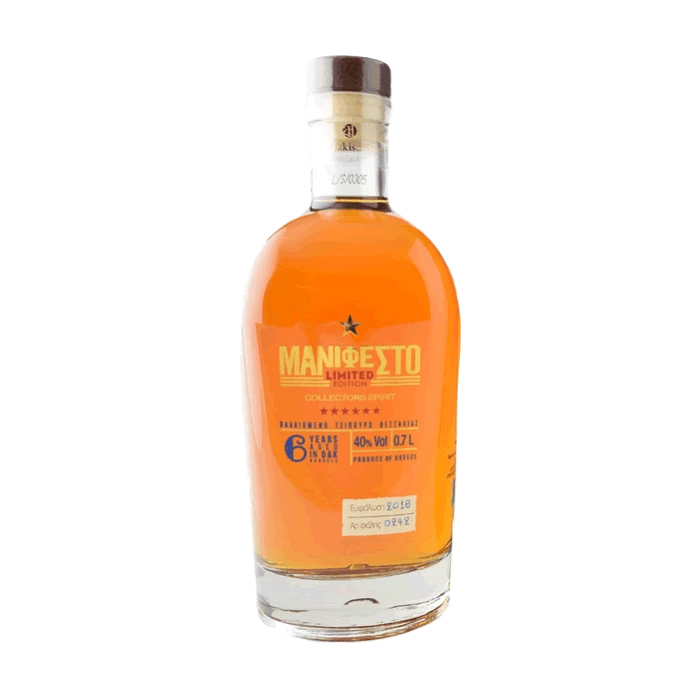Το παλαιωμένο τσίπουρο απο Μοσχάτο Αμβούργου, Μανιφέστο, σε Limited Edition έκδοση, με παλαίωση 6 ετών σε δρύινα βαρέλια. Ένα εξαιρετικό απόσταγμα που αξίζει να δοκιμάσετε προτού εξαντληθεί!